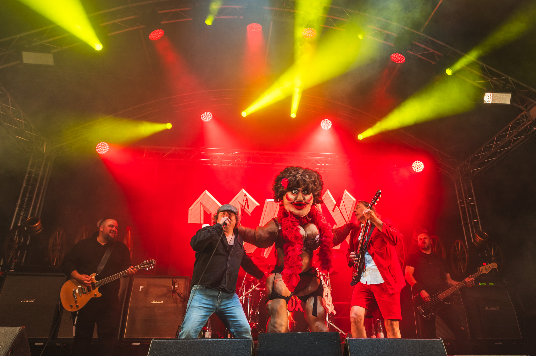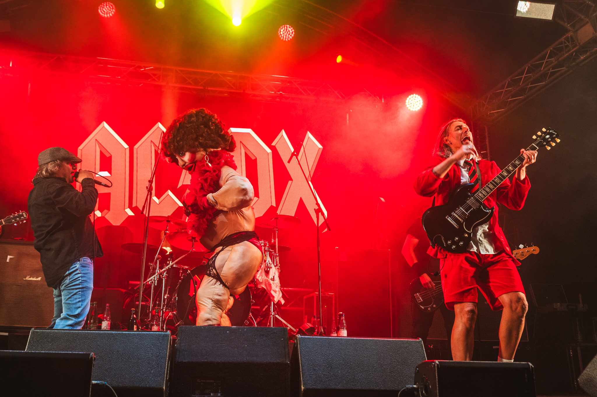 Über 900 Besucherinnen und Besucher strömten auf das Wiesenfestgelände und feierten gemeinsam eine Show, die ihresgleichen sucht. Von Klassikern wie Highway to Hell und T.N.T. bis zu Thunderstruck – die Band lieferte zwei Stunden lang ein energiegeladenes Konzert mit Pyro-Effekten, donnernden Gitarrenriffs und mitreißender Bühnenpräsenz.