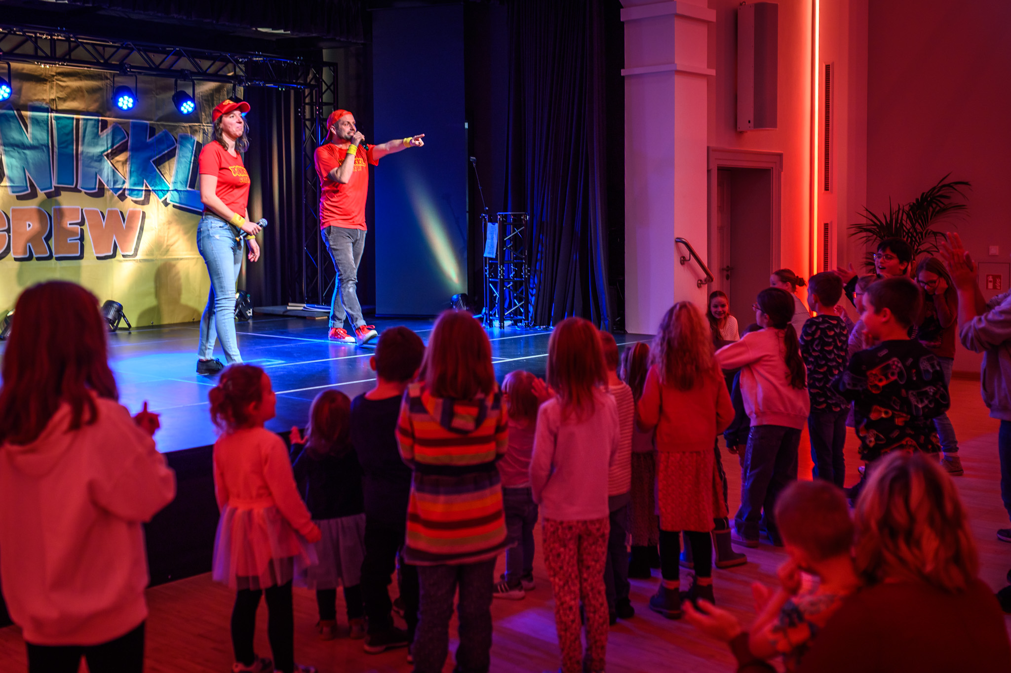 Bereits zum zweiten Mal war die Donikkl-Crew zu Gast im Schützenhaus Münchberg – und erneut wurde der Saal zum kunterbunten Mitmach-Spektakel für die ganze Familie! Mit viel Energie, bunten Kostümen und jeder Menge Bewegung rissen die Musiker die kleinen und großen Gäste von der ersten Minute an mit.