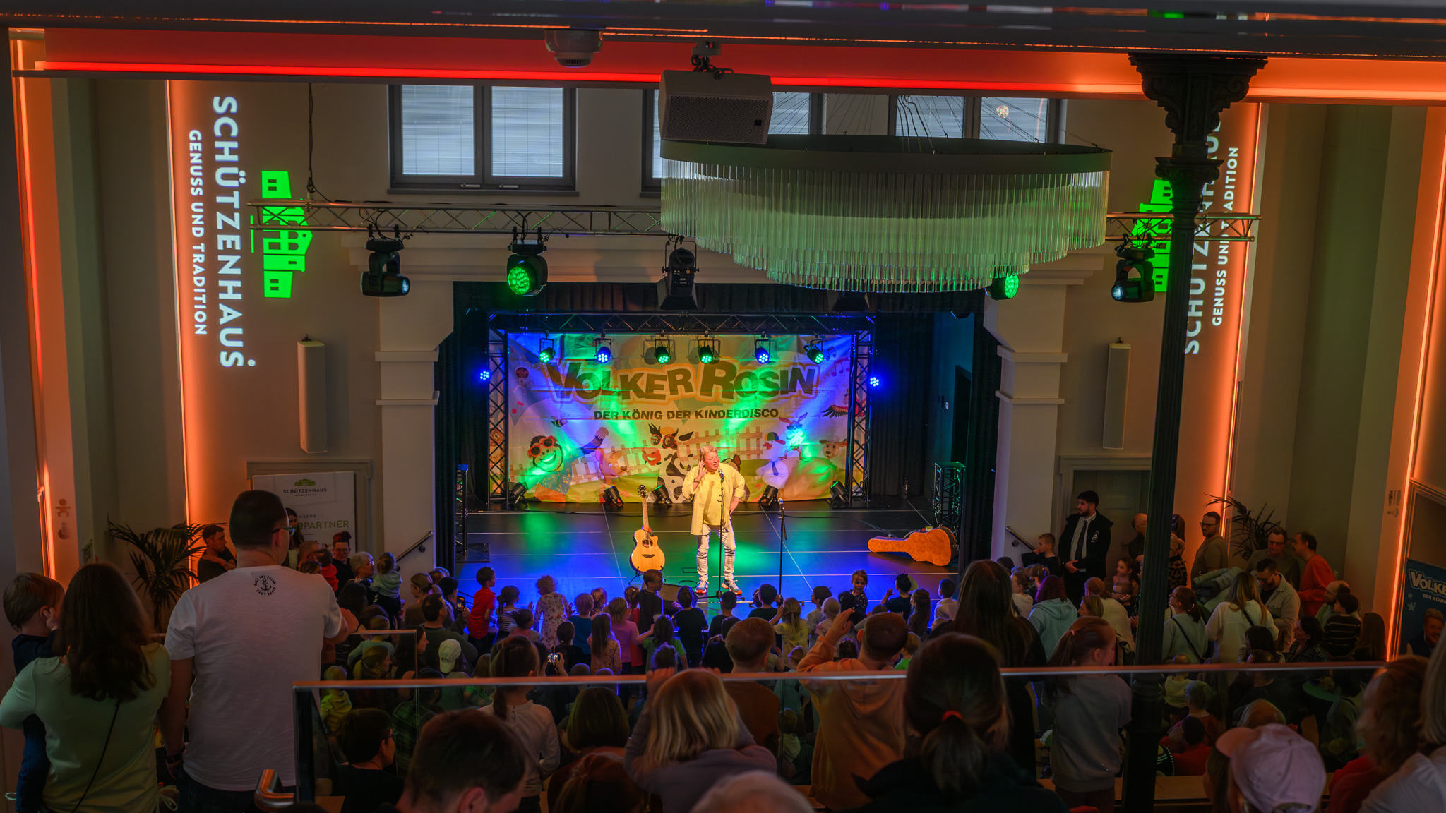 Das Schützenhaus war bis auf den letzten Platz gefüllt – und vom ersten Ton an war klar: Dieser Nachmittag würde alles andere als ruhig werden. Mit Volker Rosin stand einer der bekanntesten Kinderliedermacher Deutschlands auf der Bühne – und zeigte einmal mehr, warum er zu Recht als „König der Kinderdisco“ gilt.