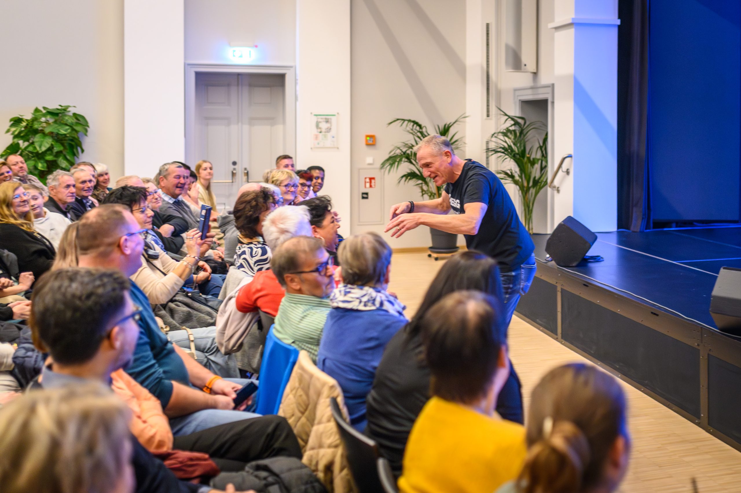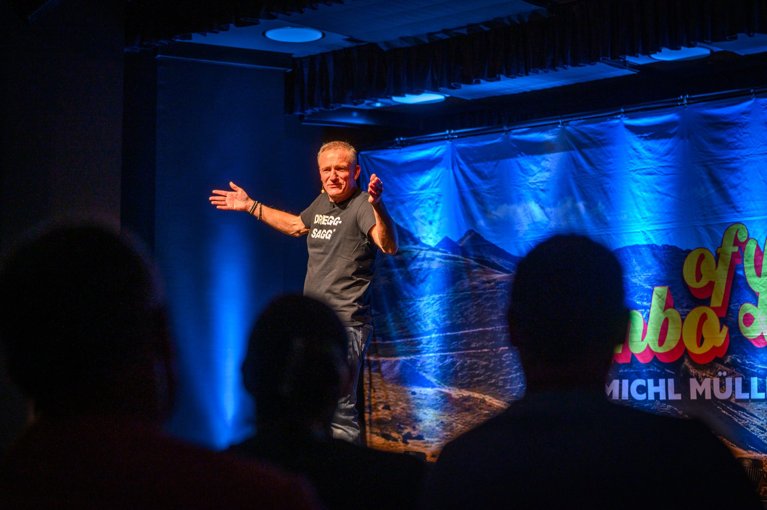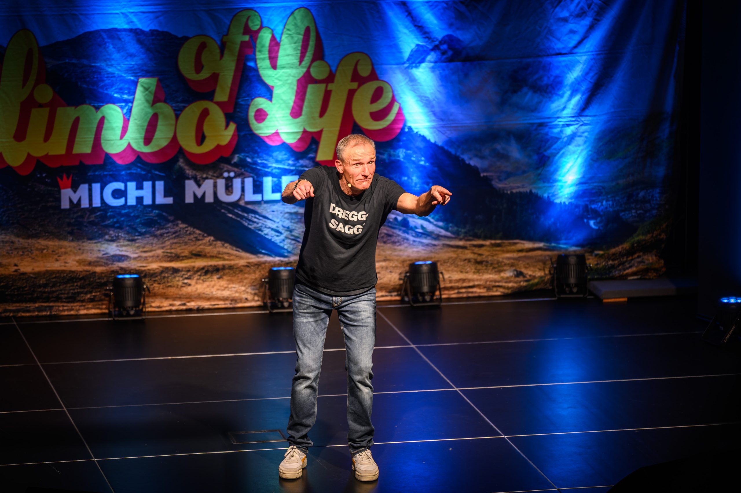 Im bis auf den letzten Platz gefüllten Schützenhaus Münchberg ging es heiß her: Michl Müller präsentierte sein neues Programm „Limbo of Life“ und ließ das Publikum von der ersten Minute an mitreißen. Humorvoll, pointiert und voller Energie navigierte er durch ein Programm, in dem das Leben als Tanz zu verstehen ist — elegant, frech und mit Tiefgang zugleich.